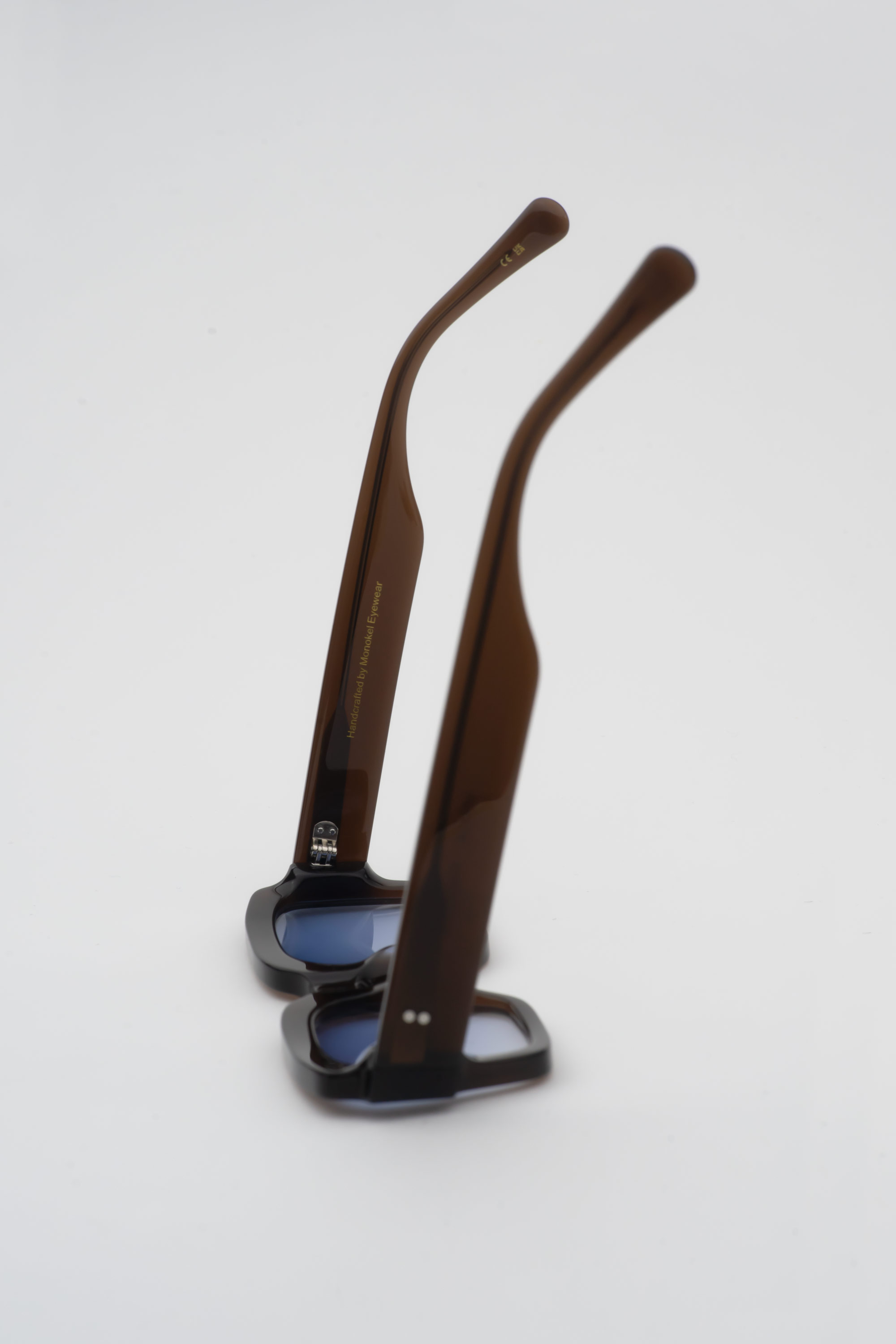 The rectangular Apollo frames are crafted by hand from organic- and biodegradable Mazzucchelli acetate, with Japanese stainless steel hinges and coated screws.